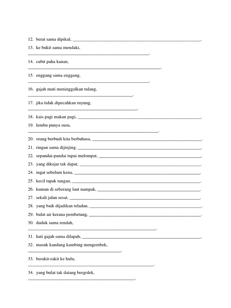 Yang bulat datang bergolek, yang pipih datang melayang. Usaha berkait rapat dengan disiplin. Orang yang malas yang selalu berputus asa. Because of lack of talent in dancing. Contoh bilangan bulat negatif yang sudah.