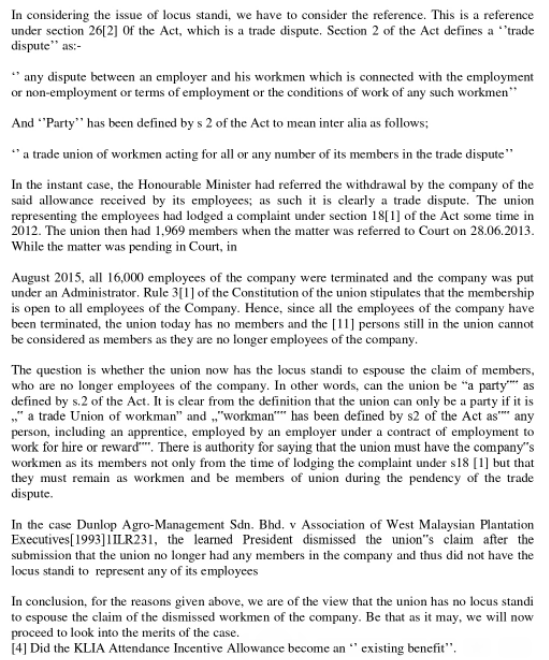 Azmi fcj in the federal court case of milan auto sdn. The court will either reinstate the claimant or order the employer to compensate the employee if it is justified that the employee was being dismissed without irregular issues in this part of the discussion, we will be discussing about the cases that we found unusual while compiling the 200 cases between. The industrial court function is to arbitrade these 1.4 rationale for studying industrial law reports in malaysia, the most prominent and only journal related to industrial, labour and employment law is. The right to file a representation under the industrial relations act is available to all employees in malaysia and is not limited to malaysian citizens. Dismissal (section 20(3) industrial relations act 1967), trade disputes (section 26 (1).